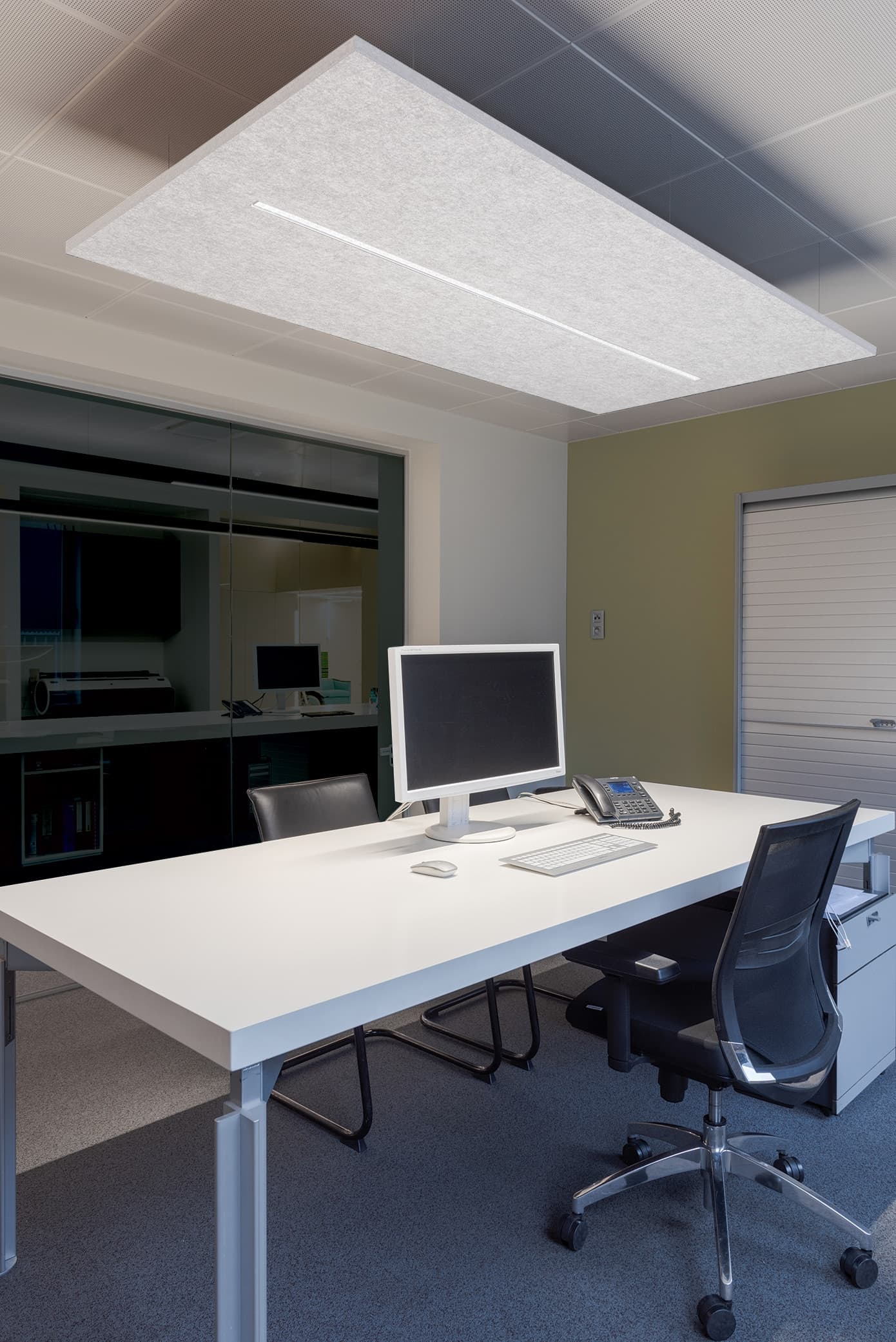We kunnen ook perfect berekenen hoeveel akoestische panelen nodig zijn in een ruimte, in functie van de absorptiecurve en het lichtdesign. De Atlantis kan met het merendeel van de lichtarmaturen in ons gamma worden gecombineerd, al dan niet met contragewichten in functie van de positionering van de panelen. Bij verdere akoestische problemen kunnen deze panelen ook achteraf worden bevestigd aan de armaturen of tegen de muur.
