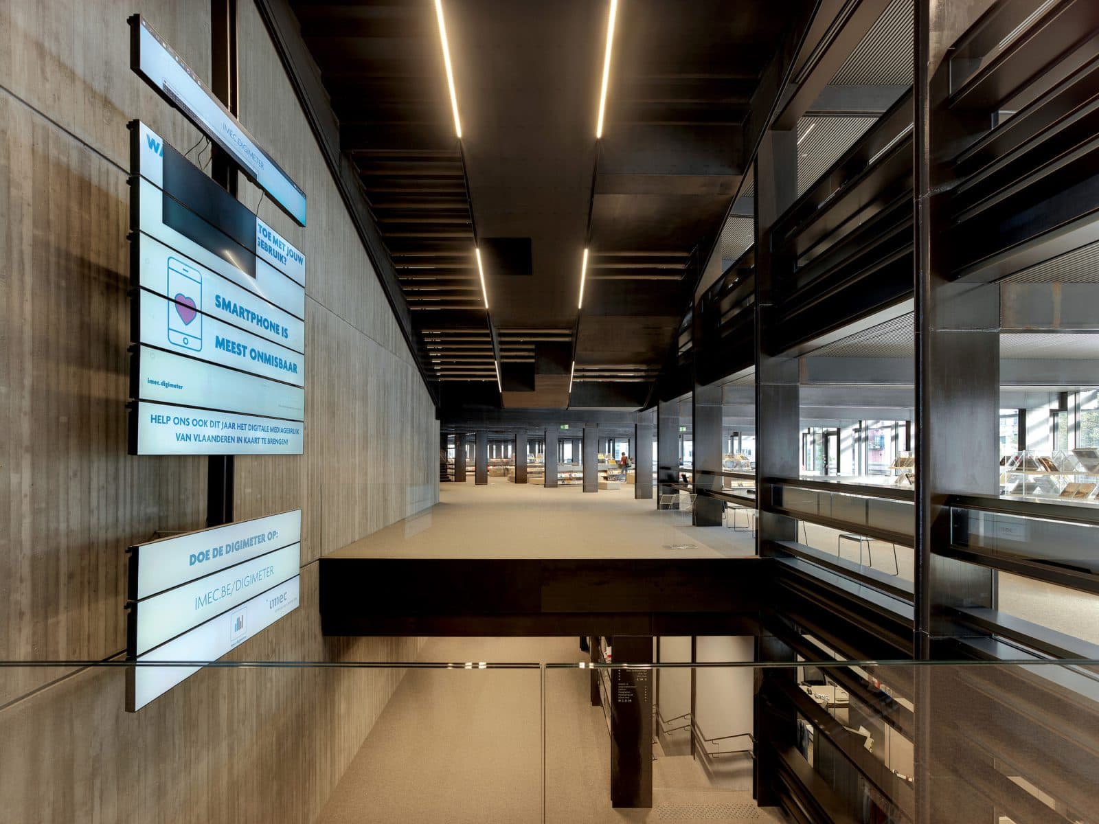 Von der BBC als eine der schönsten Bibliotheken der Welt ausgezeichnet. De Krook in Gent ist zu Recht ein international renommiertes Bibliotheksgebäude. Wir haben an der Gestaltung des Innenraums mitgewirkt und Lichtlösungen in Funktion der Klimadecke entwickelt.