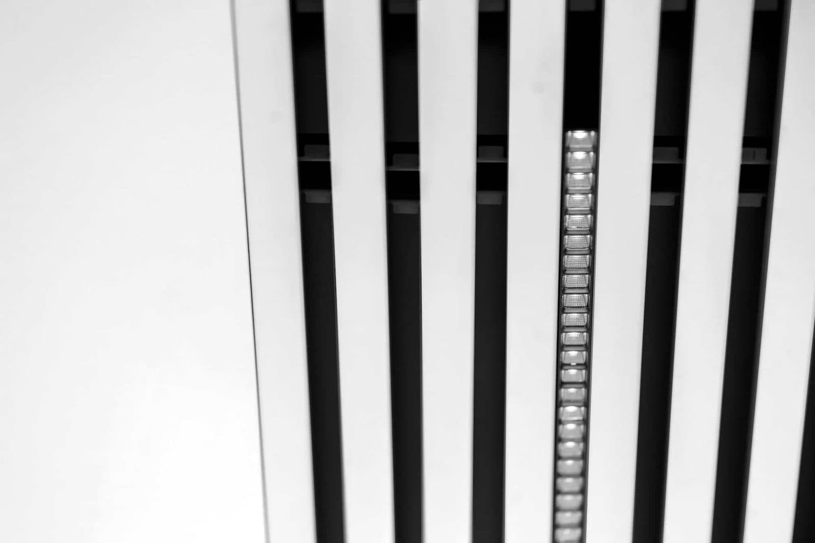 Bis vor kurzem war unser Rekta 30 SAPP die einzige integrierte Option für SAPP und 30BD-Klimadecken. Diese Leuchte bietet eine ästhetische Lösung für diese Decken mit schmalen Lamellen. Da die Halterung die gleiche Breite wie die Lamelle hat (30 mm), kann sie gut in derselben Linie angebracht werden. Indem ein Teil der Lamelle durch die Rekta 30 SAPP ersetzt wird, bleiben die Linien der Decke unberührt.