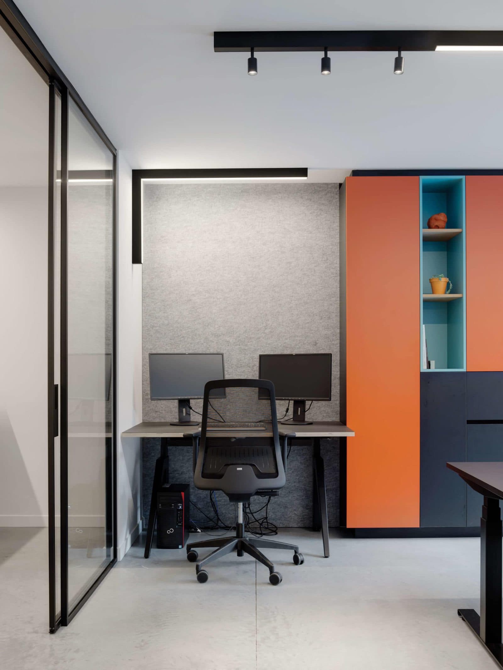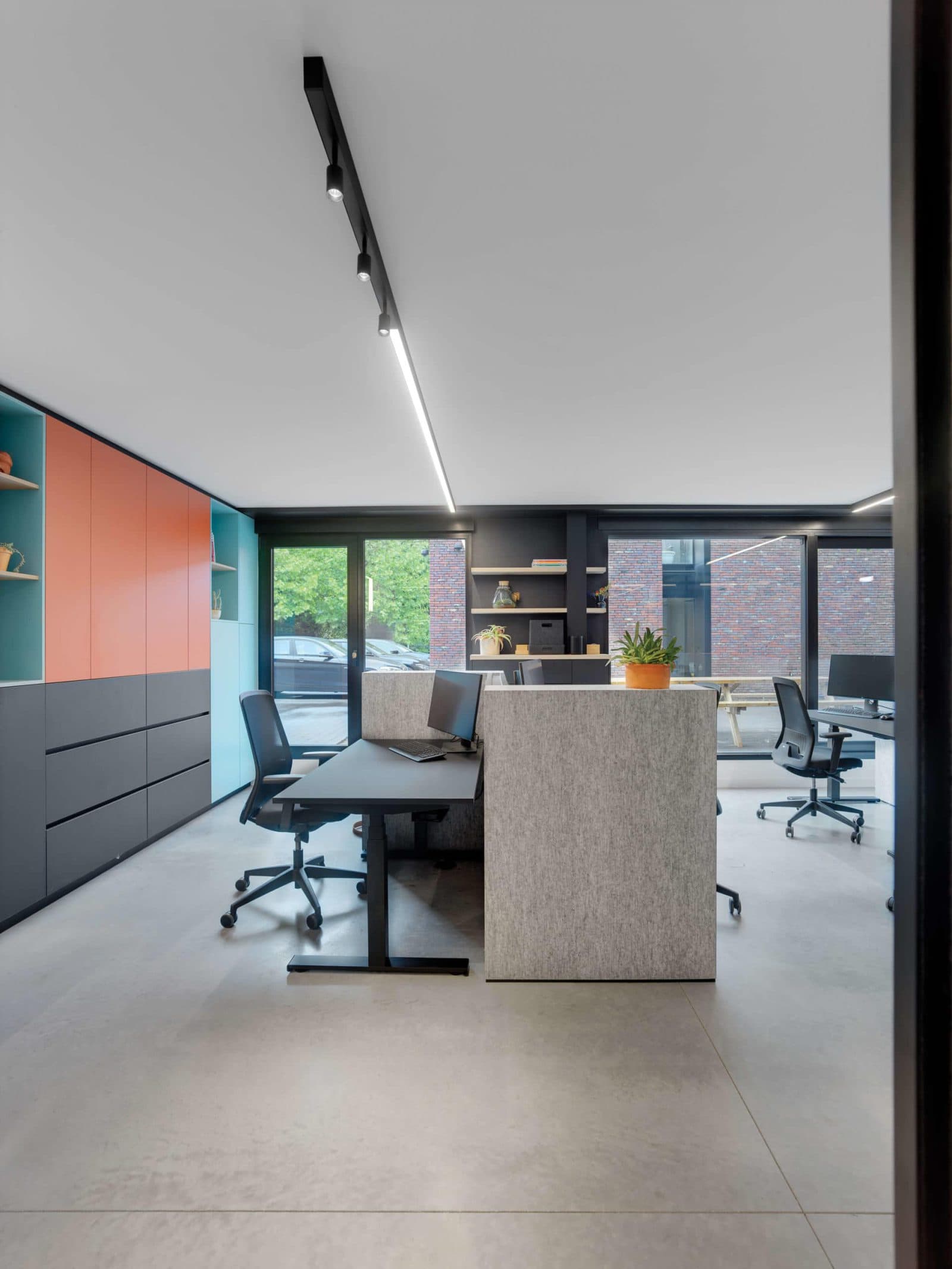 “Although the luminaires are black and linear, the end result is very dynamic,” concludes Evy, “and the combination with the colorful furniture works out really well.”