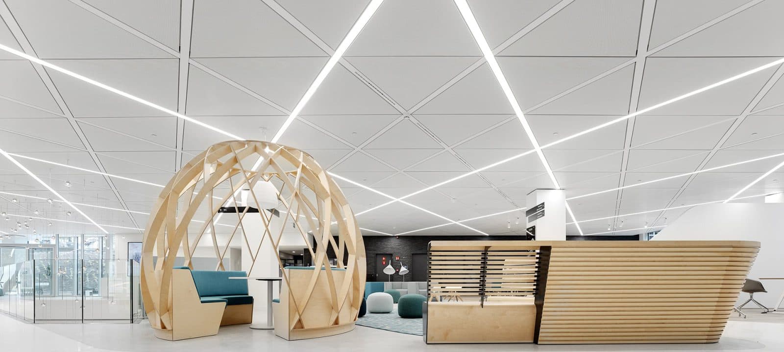 Chez Multiline, nous proposons des solutions d'éclairage sur mesure pour tous les types de plafonds suspendus. De l'actif au passif, du bois au métal en passant par le feutre. Nos éclairages sur mesure s'intègrent parfaitement à l'ensemble. Que votre objectif soit d'améliorer le confort thermique, esthétique ou acoustique, nos produits sur mesure contribuent au concept.